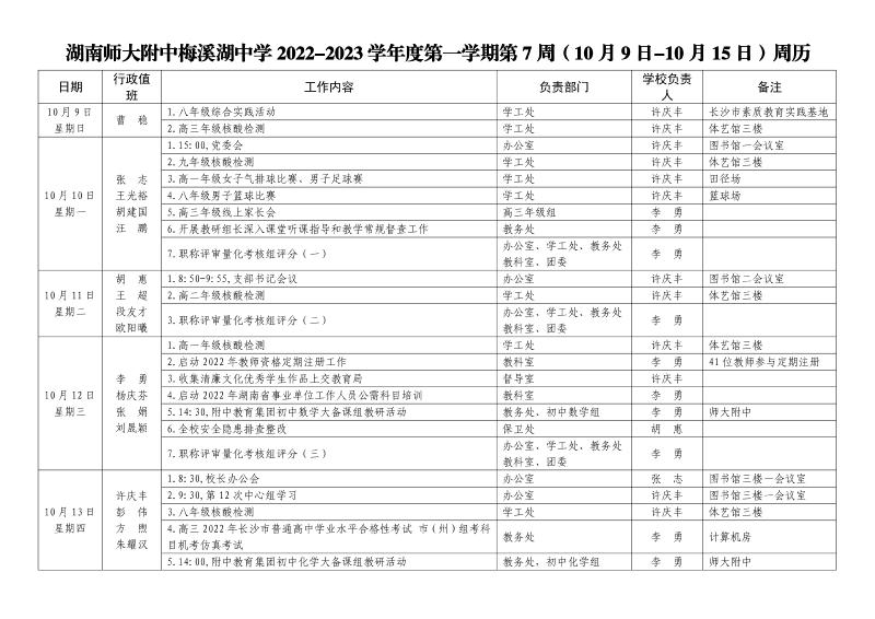 第7周工作安排表