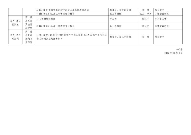 第7周工作安排:2022年10月9日-10月15日