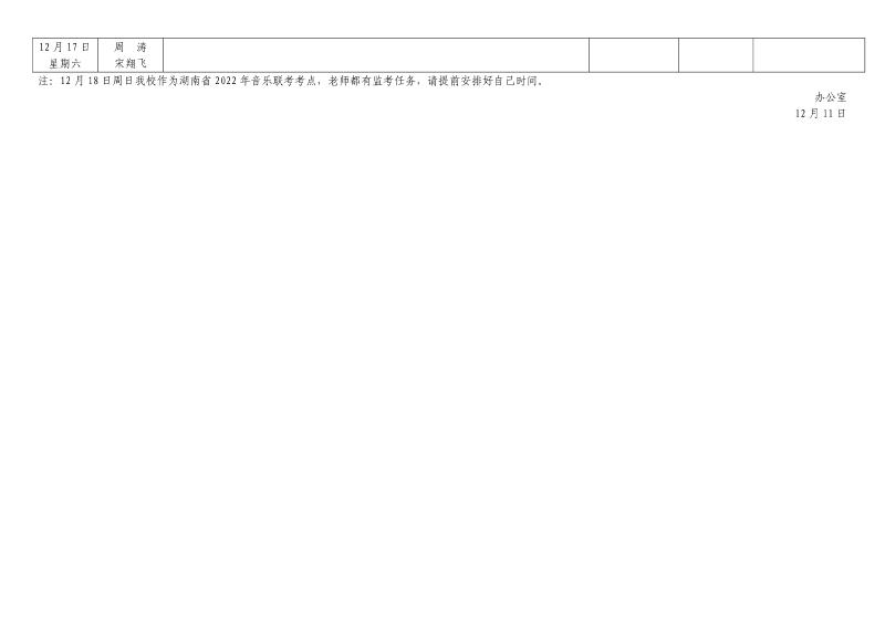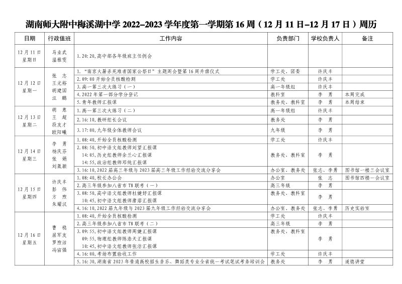 第16周工作安排表