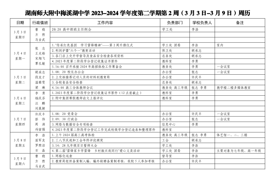 2023-2024学年度第二学期第2周周历