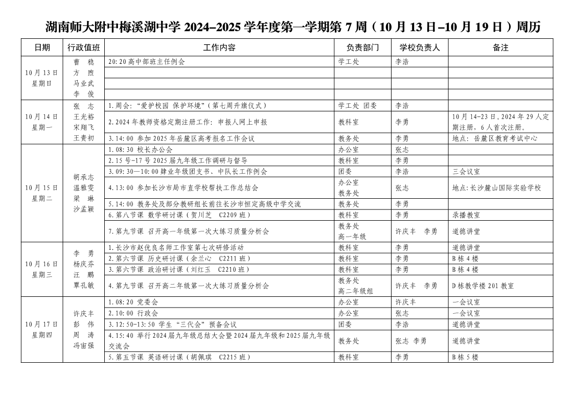 2024-2025学年度第一学期第7周周历