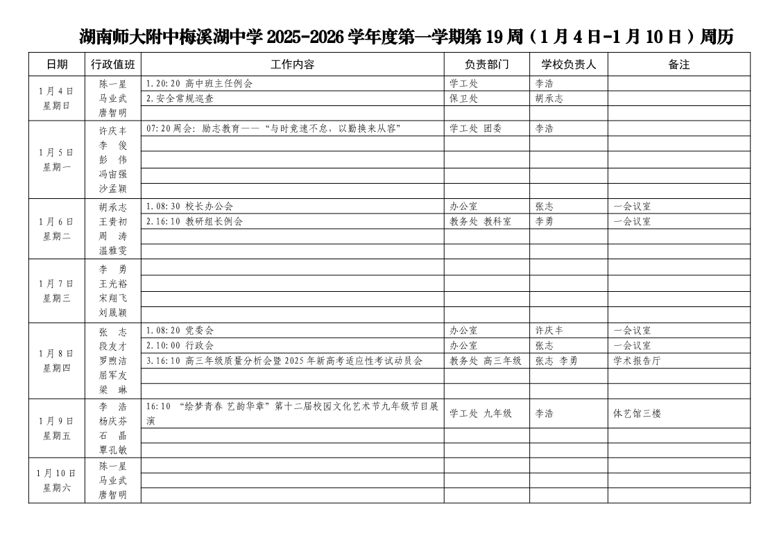 2025-2026学年度第一学期第19周周历